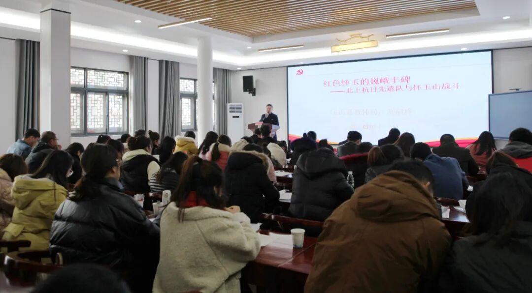 授牌仪式结束后,刘韶玲为全体学员上了题为《红色怀玉的巍峨丰碑——北上抗日先遣队与怀玉山战斗》的生动党课并对第三期“双培养”培训进行了总结。他从临危受命,孤军远征;浴血怀玉,英雄赞歌;精神丰碑,代代传承三个方面讲述了北上抗日先遣队血战怀玉跨越时空、感天动地、可歌可泣的故事。认为本期“双培养”培训主题鲜明“精准”、课程设置“精心”、师资力量“精选”、培训成果“精彩”。希望大家要再学习再深化,抓学习抓提升,在立德树人的担当实干中不断修炼品性、提升悟性,成为新时代又红又专的人民教师。