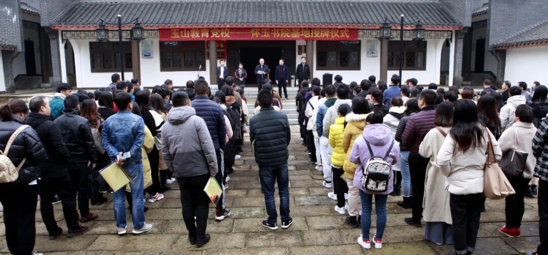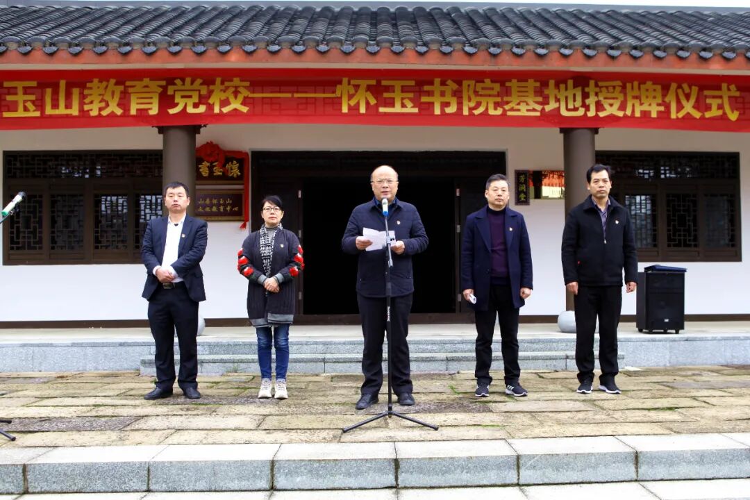 陈卫民指出,成立玉山教育党校怀玉书院基地,是丰富系统党建教育载体的重要措施,是增添教师队伍建设动力的有力举措。怀玉书院承载着中华文明博大精深、源远流长的古色文脉。方志敏清贫园独特的红色资源,为怀玉书院厚植了爱国、清贫、创造、奉献的红色基因,为我们搭建了强有力的红色教育新阵地,必将进一步增强党建+专业“双培养”培训的实效性。他强调,近几年,教体系统各级党组织立足“两创一树”党建模式,构建了“5+1”学习机制,建立了五大区域党建网格,创建了11所党建示范校,实施了三期“双培养”项目工程,健全了党建考评机制,开展了党员教师“三亮三比”“三帮三带”系列活动,推进了基层党组织亮点和创新评比、千名党员教师赛党课、“杏坛党旗红”评选等活动,实现了党建工作新突破。先后被“江西组工”微讯、《江西日报》《中国教育报》等媒体宣传。去年 1月,成立了玉山教育党校,并向县教师进修学校和怀玉山玉峰小学授予了玉山教育党校基地牌。今天又为怀玉书院基地授牌,揭开了我县党员教师教育培训的崭新一页。相信通过深入挖掘整合怀玉书院基地的红色、古色、绿色和廉政文化资源,一定能打造出主题突出、特色鲜明的培训品牌,让党员教师获得更丰富的党性滋养。希望怀玉书院基地能切实承担起神圣职责,将之打造成党员教师锤炼党性、固根守魂、补钙壮骨的重要阵地,为推动玉山教育高质量发展提供坚强组织保障。