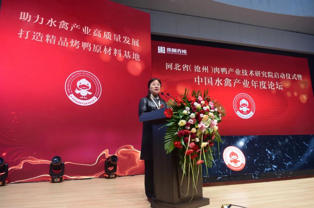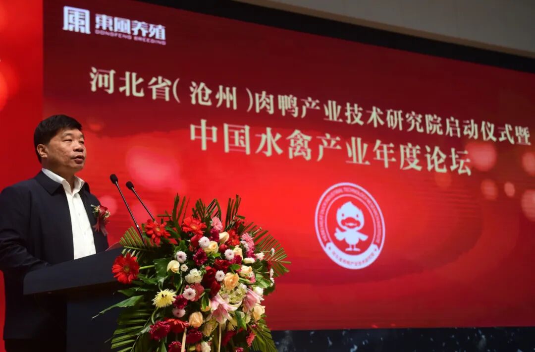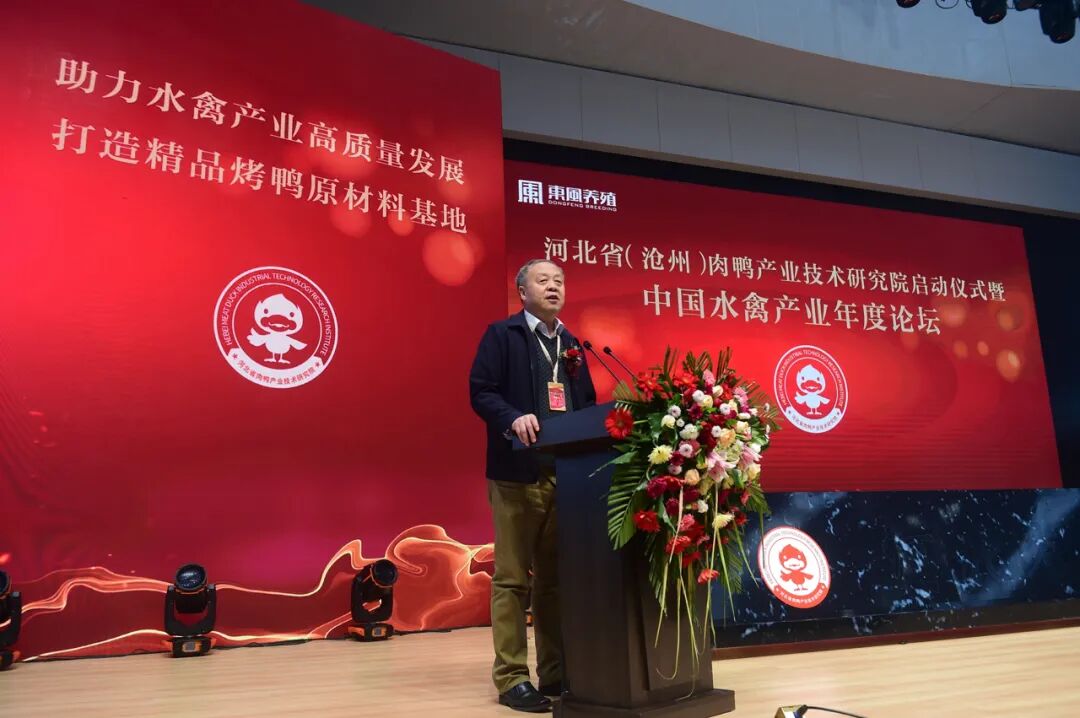 沧州市人大常委会副主任谢荣珂宣布河北省肉鸭产业技术研究院启动仪式暨中国水禽产业年度论坛正式启动。