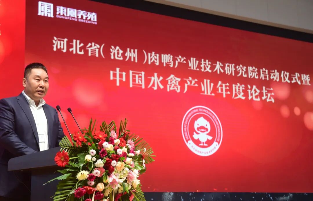 河北省肉鸭产业技术研究院院长、河北东风养殖有限公司董事长徐海潮在致辞中表示,要充分认识创新是第一动力,提供高质量科技供给,着力支撑产业技术体系建设”。河北省肉鸭产业技术研究院的成立正是积极顺应国家发展战略,并牢牢把握住新一轮科技革命和产业变革的大趋势。研究院以增强产业技术创新能力和市场竞争力为目标,围绕产业链进行技术创新,开展关键技术研发、集成、成果转化、产业技术服务,人才培养,产业发展战略研究等科技创新活动;肩负着加强肉鸭产业技术体系建设的重要任务。